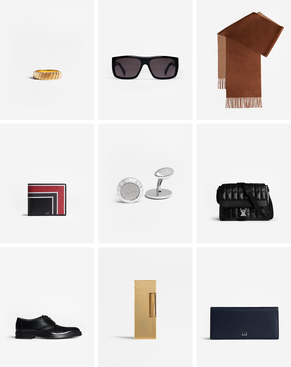Find gift inspiration from the immaculate table tops of the dunhill festive campaign. The iconic Rollagas and Turbo lighters feature alongside classic cufflinks and precision-engineered jewellery from the Transmission collection – automotive heritage reimagined. Beautifully crafted leather goods include styles from the Rollagas, Duke Fine Leather and new Archive Deco collections, whilst a curated selection of sunglasses, belts, scarves and ties showcase the House’s elevated accessories, refined for daily life.